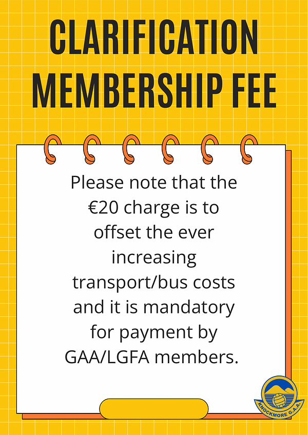 Please note that the €20 additional fee is to offset the cost of transport during the year. The bill for transport last year was up on €20000 combined and the executive felt that one charge now rather than asking for people to pay per journey during the year may be a fairer system. This is now a mandatory fee and it applies to GAA & LGFA members.