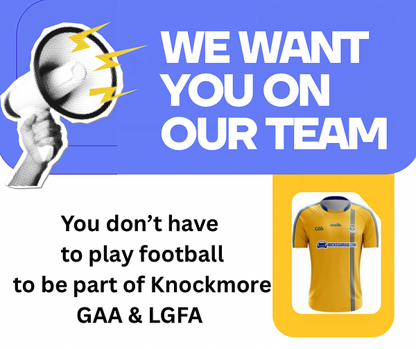 You don’t have to be a footballer to play for team Knockmore! We want your talents and we want you to be part of our growing community. We are always looking for people to help out and join with us in growing our club - and with the satisfaction of feeling good about contributing to others and having a bit of craic at the same time. It’s a great way to make new friends and connections. If your talents or skills could help us out - bring it on. We’re open to ideas. Here’s some of the areas we are looking for: