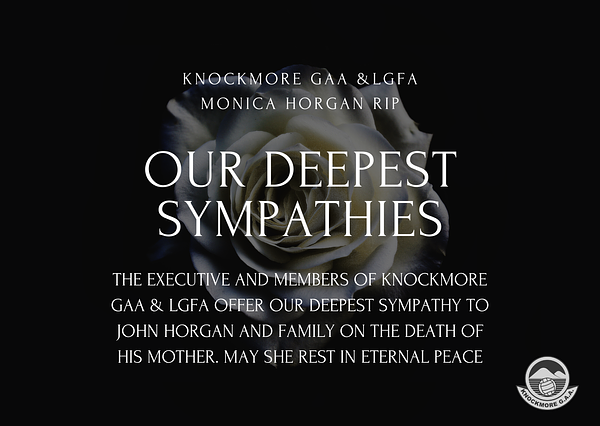 The Executive of Knockmore GAA & LGFA and the wider club membership wish to extend our deepest sympathy to John Horgan, and his wider family circle, on the death of his dear mother. May she rest in eternal peace.