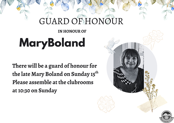 We will have a guard of honour for the late Mary Boland on Sunday 15th March