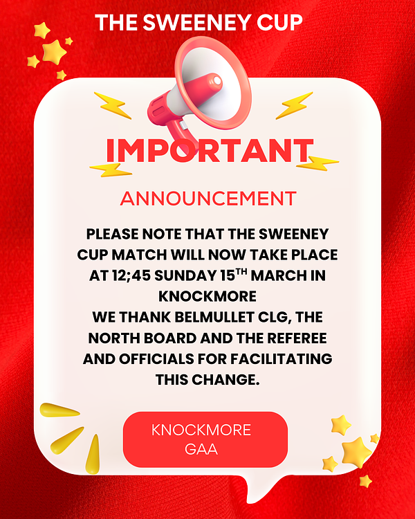 We thank Belmullet CLG, The North Board, Referee and officials for facilitating this change.