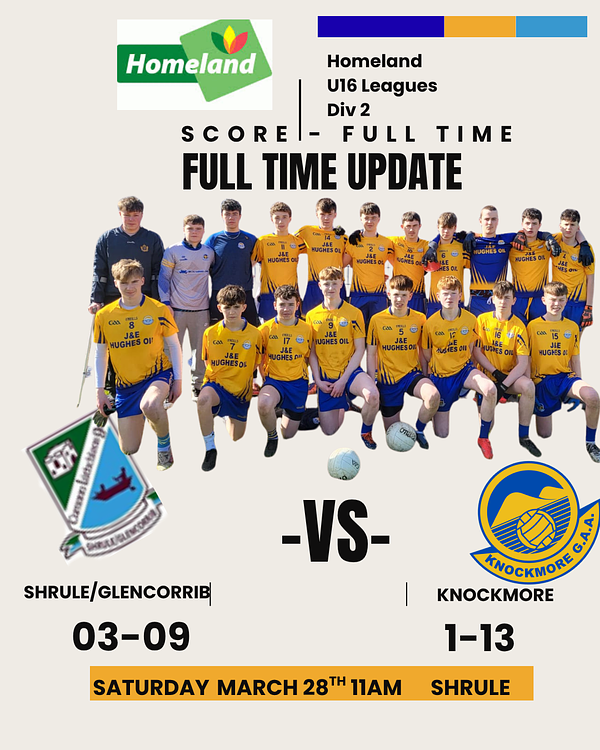 Our lads put in a fine shift as they met Shrule/Glencorrib at 11am this morning in Shrule. A last minute goal by Shrule/Glencorrib sealed the fate of the men from the Parish of Backs. Devastating blow but the boys can be proud of their performance.
