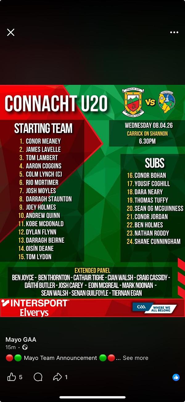 Tickets must be purchased in advance online via U20 football tickets. For those unable to attend the game will be streamed live by Connacht GAA, purchase a Stream pass here.