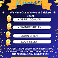 Winners of the first raffle for 2 Songo tickets each: Gerry Conlon , Frances Kelly, John Brien...